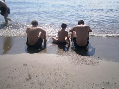 Moře se nám libilo,pláž nebyla úplně čisťoučká, na břehu uschlé naplaveniny z moře, ale nám to nevadilo. Bar na pláži, voda, džusy,cola, fanta, různé druhy kávy, pivo, odpoledne bar s jídlem-hamburgry, špagety, hranolky, zelenina, ovoce. Jelikož jsme nebyli v úplné sézóně, lehátka u moře i u bázénu se vždy našla.