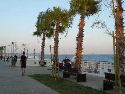 Mezi hotelem a pláží byla nádherná promenáda a park.