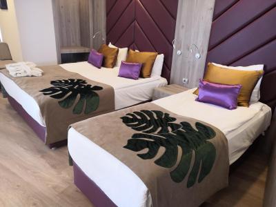 Luxusně zařízené pokoje uspokojí každého náročného klienta. Prostorné, moderně vybavené pokoje. Krásně barevně sladěné. Za mě určitě ano ! :)