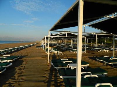 Pláž před hotelem denně uklizená, na pláži k dispozici lehátka a ručníky zdarma. Na pláži bar s nápoji, toalety.