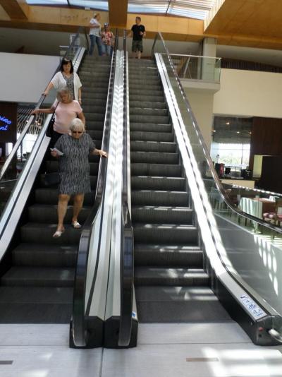 Při vstupu do hotelu jsem si připadala jako v letištní hale nebo v nákupním centru. Je to obrovská, devítipatrová budova, celá prosklená. Skla nebyla pravděpodobně hodně dlouho umytá,nepůsobilo to na mě dobře. A jelikož nefungovala na chodbách klimatizace, bylo zde v době mé prohlídky nesnesitelné vedro. Do patra vede eskalátor.