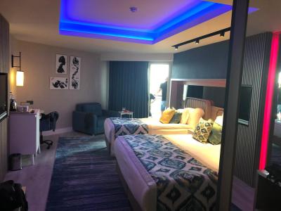 Pokoj krasny, moderni a hlavne cisty. Koupelna taktez cista a dostacujici svou velikosti pro 3 osoby. Pokoj 1425 krasny vyhled na areal s bazeny a more. 1426 vyhled na lunapark s aquaparkem a mistni hlavni tridu.