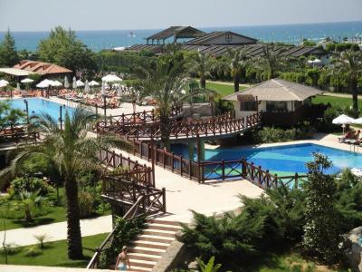 Hotel má 3 typy pokojů ( standart, suite, junior suite). V hotelu je k dipozici 2 hodiny denně lékař, jinak na zavolání. Wifi v lobby baru zdarma, internet za poplatek 2 eur/hod v herně. Trezor na pokoji zdarma. Plážové osušky na kartu zdarma. Minibar zdarma denně doplňován vodou a nealkem. Slunečníky a lehátka na pláži i u bazénu zdarma. Hotel je 5 let starý, má 349 pokojů, 2 restaurace ala carte – italská a turecká. Miniclub pro děti a junior club pro starší děti. 3 bazény+1dětský bazén. Animační programy 24 hod denně. Kousek od hotelu se nacházejí slavné vodopády Karpuz Kaldiran.
