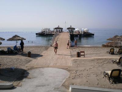Krásna piesočnatá pláž s pozvoľným vsutpom do mora je čerešňou na torte v tomto raji. Je tu hotelové mólo, krásne pohodlné "výhľadne" s matracami, na ktoré treba rezervácie. Slnečníky, ležadlá, matrace a osušky sú zadarmo.