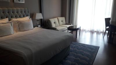 Hotel nabízí ubytování v apartmá, pokojích nebo vilách. Některé z nich mají terasu s výhledem do zahrady nebo na moře. Pokoje které jsme v rámci prohlídky viděli byly luxusní a čisté.