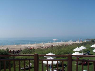 Pláž písečná přecházející v oblázkovou, vstup do moře mírný. Plavčíci ochotní a ohleduplní. Moře teplé. Před hotelem 2 dětské bazény, bazén se skluzavkami a rozlehlý velký bazén pro dospělé.