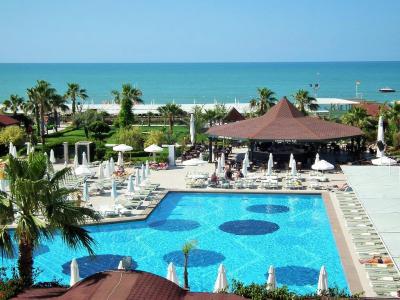 Vybavení odpovídající 5* hotelu. Vstupní hala s recepcí a posezením. Výtahy. Velký bazén se skluzavkami, dětský bazén, vnitřní vyhřívaný bazén. Lehátka a slunečníky u bazénu a na pláži zdarma. Fitness, aerobic, plážový volejbal, tenis, stolní tenis, basketbal, bowling, šipky, boccia, kulečník. Minigolf, jacuzzi, biliár. Spa centrum: vířivka, pára, sauna, turecké lázně, masáže, aromaterapie. 1 hlavní restaurace, 3 a' la carte (rybí, turecká, italská), 4 bary, diskotéka, animační programy, internet, miniclub, juniorclub, dětské hřiště, herna, videohry, lékař, čistírna, kadeřnictví, hlídání dětí. Půjčovna aut a vodní sporty na pláži za poplatek. Rozlehlý areál, udržovaný.
