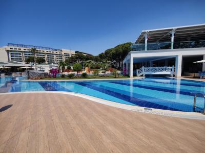 Hotel má spoustu možností aktivit, nechybí sauna, hammam, posilovna nebo aquapark. Za poplatek je možné využití golfových hřišť.