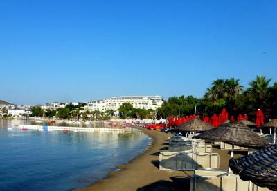 Pláž přímo u hotelu. Bohužel i když u lehátek byly odpadní nádoby byly v písku nedopalky cigaret. Je to v lidech jak se chovají. Moře krásně čisté. Mušličky zde však nenajdete. Protože jde o záliv, nečekejte zde vlny. Voda byla osvěžující. U pláže sprška na umytí nohou od písku, také sprcha pro celkové osprchování a toalety. Vše čisté.