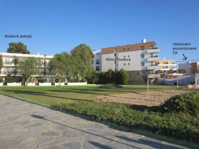 Pokoje ve staré budově (klubové části) jsou malé, cca 3x3,5m. Stará budova určena převážně pro Čechy. Koupelna 2x1,2 m - když člověk seděl na WC, mohl by si zároveň sprchovat nohy a čistit zuby u umyvadla. Nad dveřmi v pokoji na terasu se volně pohyboval anténní kabel.
