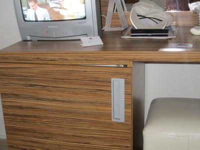 Vybavení pokoje v dezolátním stavu, zřejmě vyřazeno z hlavní budovy. V pokoji se nacházela malá vestavěná skříň.
