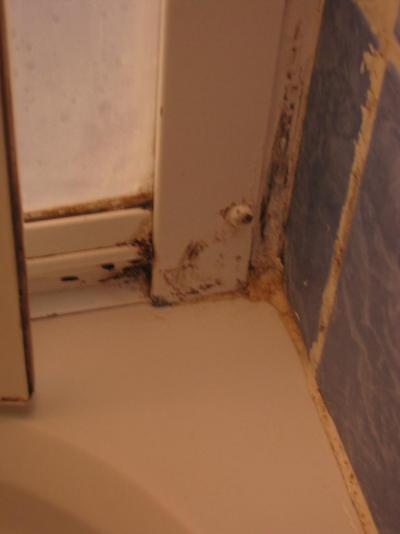 Malinká koupelna plná plísně, odpady neodtékají.