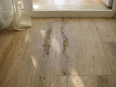 Pokoj byl vybaven rozpadajícím se nábytkem, na podlaze v kamenné dlažbě vydrolené kusy kamene.