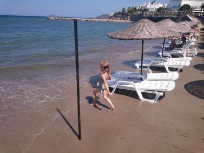na 3* hotel slusne, ale bohuzel ne na standard jaky jsem zvykly, tzn. maly pokoj idealni pro zamilovane pary, sprcha z lesteneho mramoru po namoceni v kategorii zbrani hromadneho niceni (holka si mi malem hned druhy den rozbila hlavu, nastesti mistni remeslnici nedelaji veci moc fortelne), vyhled na more ... odpadku, jedna mala jidelna, vedle zachodu u hoteloveho bazenu 6*12*1,4 metru (to je zhruba velikost bazenu na zahradu pro ctyrclenou rodinu a sousedovic deti) a mini detsky bazen o hloubce 50 cm