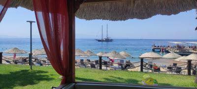 Čistá oblázková pláž denně upravována. Z mola se dá skákat, plno rybiček pro potápěče i plavce. Do moře se vstupuje přes oblázkovou pláž ale i děti to zvládaly bez potíží a ve vodě už to bylo jedno (písek), moře nádherně modré a příjemně osvěžující.