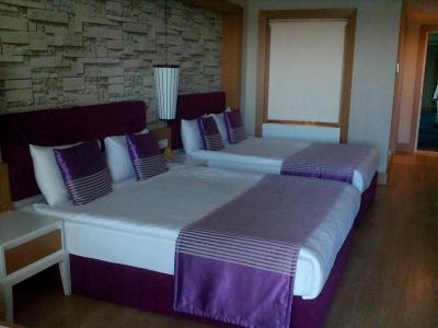 7 alla carte reštaurácií - v jednej sa platí /nepovedali v ktorej, pretože sa to môže od sezóny k sezóne meniť/, minibar je naplnený raz - voda sa dopĺňa na požiadanie, 24 hodinový bar, pool bar, beach bar, aquapark s 5 tubami, miniklub, na pláži vodné športy /banana, katamarán, surf - klienti si tu môžu urobiť licenciu/ , 6 tenisových kurtov, 6 volejbalových kurtov, futbalové ihrisko, aerobik, spinning, fitness, spa /19 miestností + VIP miestnosť/, wifi zdarma v celom areáli, ping pong