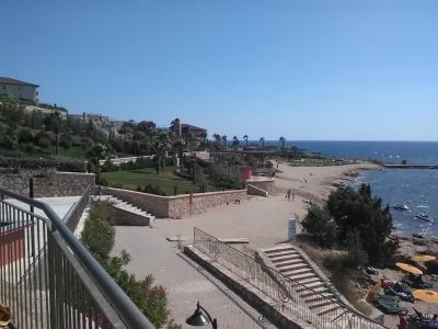 Pláž čistá, písečná, vstup kamenitý, doporučuji boty do vody. Vstup do moře i z mola. Hotel je přímo u soukromé pláže, kde je i plážový bar. Jedinou nevýhodou je studené moře a častý vítr.