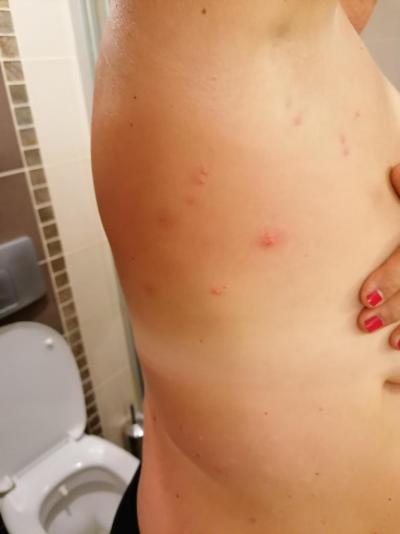 Hned první noc nás poštípali štěnice, nechutné v ***** hotelu. S obtížemi nám vyměnili pokoj, odmítla jsem v tom zablešeném spát. Svědilo, štípalo to, takže jsme se nemohli koupat ani v moři ani v bazénu. A proto jsem tam byli abychom se užili moře a bazénu, hahaha. Nehledě na to, že na nás lidi koukali, jestli nemáme náhodou nějakou infekční nemoc. A uprostřed týdne, jsme měli papír na posteli, že budou budovu deratizovat. Náhoda, ani náhodou. Tak to nás dorazilo, v sezoně, v plně obsazené budově nás budou obtěžovat deratizací. Deratizace se neprovádí preventivně, ale když je potřeba zahubit přítomné parazity!