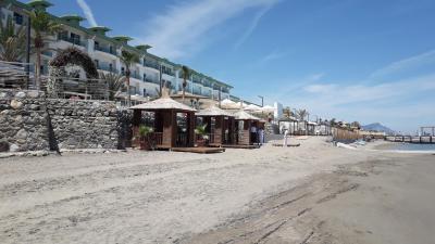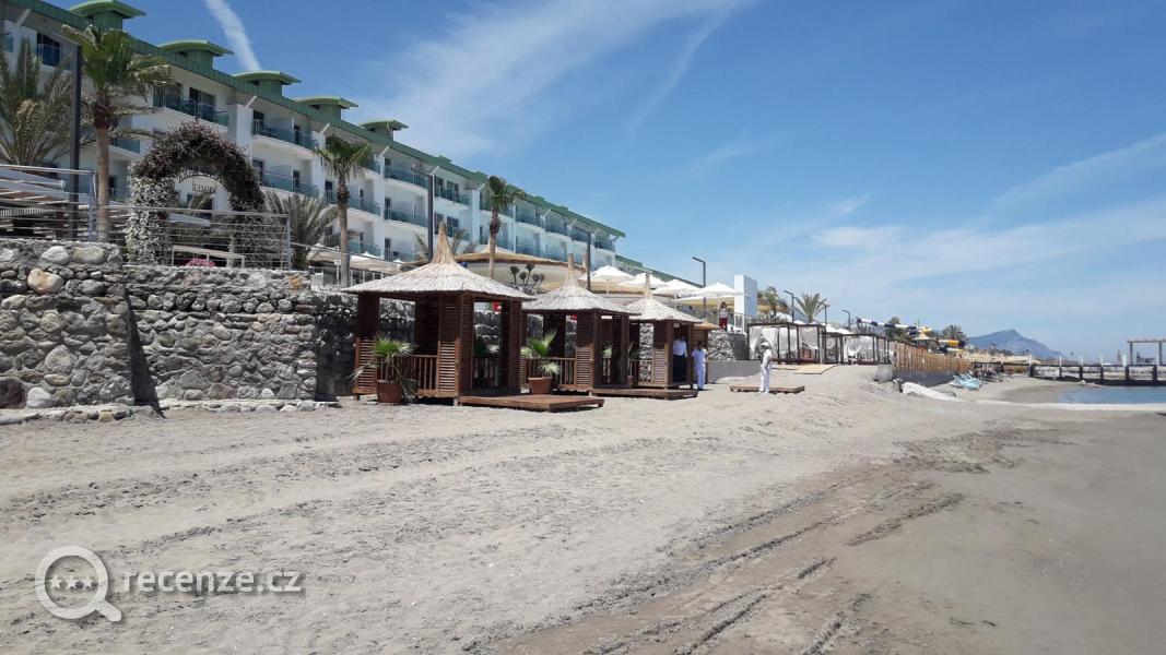 Hotel leží přímo u pláže. Pláž je písečná a moc hezká. Plážové osušky jsou zálohované, slunečníky a lehátka jsou zdarma.