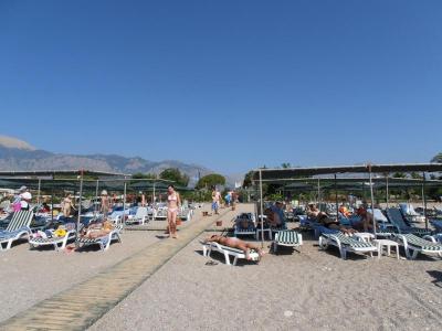 na pláž se sice chodilo 5 minut pěšky, ale nebylo to nic strašného, na pláži lehátka, slunečníky, bar, sprcha, toalety...vyhrazeny pro každý hotel zvlášť, moře čisté, pláž oblázková s pískem, vstup do moře mírný do těch 3m, pak už byla hloubka cca 10m až k bojkám, 200m od lehátek půjčovna vodních skútrů, padák, jízda na banánu, výlety na člunu, ceny od 10eur do 60eur......