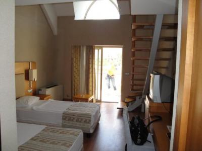 Hotel je postaven ve stylu zámku. Na pláž je to asi 300 metrů přes zahradu a most. Na pláži je hrubší písek. U pláže je bar a restaurace kde platí all inclusive na odpolední snacky. Hotel má aquapark. Wifi a internet je za poplatek 2 eur na hodinu na recepci nebo v lobby baru. Plážové osušky na kartu zdarma. Trezor na pokoji a minibar doplňován vodou zdarma. Nejbližší bankomat cca 100 m od hotelu, kde je možné vybírat eur, usd i eura. Rodinné pokoje jsou patrové s 2 koupelnami. Tenisové kurty a fitness zdarma. Jen některé pokoje mají balkón nebo terasu. Na recepci je směnárna s výhodným kurzem ( v dobu našeho pobytu 1 EUR=2,1 AYT).