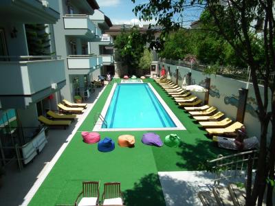 Hotel v klidné ulici, v docházkové vzdálenosti od pláže i pěkného přístavu. Cca 45 km od centra města Antalya.