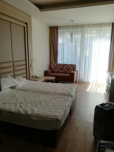 Hotel je velice rozsáhlý, pokoje jsou zajímavě řešené, prostorné, moderně zařízené a mají vždy terasu nebo balkon s posezením. Na terase či balkoně sušák na prádlo. Denně doplňovaný set na kávu, čaj a minibar. Doplňkový sortiment: pantofle, šitíčko, hygienické potřeby… Pokud by chtěl člověk najít mouchy, tak je samozřejmě najde.
