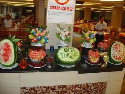 Jídla bylo víc než dostatek. Vždy krásně nachystané, neustále doplňované, čerstvé! Když bylo cokoliv ovadlé, odnesli to a přinesli čerstvé. Číšníci neustále uklízeli nadobí a měnili ubrusy. Pití formou samoobsluhy (nealkoholické nápoje a různé druhy kávy) nebo u barů (alkoholické nebo míchané nápoje) 24 hodin denně.