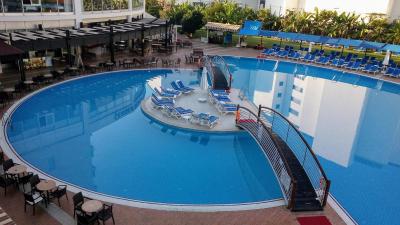 Krásná dovolená na sklonku září.Pěkný hotel se vším,co si jen můžete přát.Prostorná jídelna,recepce..lobby s připojením zdarma,turecké lázně,kadeřnictví,mučírna..posilovna,vnitřní bazén,obchody se suvenýry,boty,kabelky,oblečení,povlečení,ručníky,šperky.. mimo jiné slevy po sezóně.