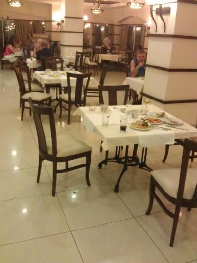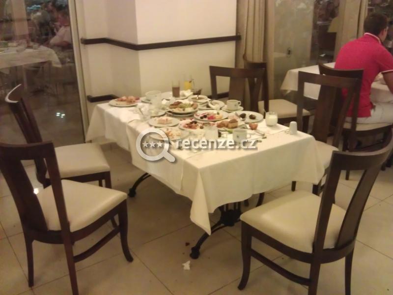 Katastrofa. To jsem ještě nezažila. Myslím si o sobě, že jsem celkem nenáročná, ale to, co předváděli tady, jsem doteď nerozdýchala. Každý den ta samá jídla. Což by nevadilo v případě, že by byl výběr. Bohužel byly každý den jak k obědu, tak k večeři 3 ta samá jídla. Na ta ještě byly fronty, protože pro celý hotel byla jedna mísa hranolků... V případě, že jste do jídelny nepřišli hned na začátek, byl vůbec problém ještě nějaká jídla dostat... Ještě horší než jídlo byly služby. Číšníci byly laxní, neochotní, stoly nesklízeli, takže jste si většinou neměli kam sednout. Nebo jste si stůl museli uklidit sami. Talíře, které se tvářily jako čisté, byly ve skutečnosti špinavé, skleničky byly ihned rozebrány. O příbory jste museli prosit.