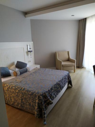 Hotel odpovídá tureckým 5*, pokoje jsou prostorné, vzdušné, s bočním výhledem na moře. Na balkonku stoleček a dvě kvalitní plastové židle + malý sušák. Kladně hodnotím šíři a kvalitu matrací. Velká prostorná koupelna se sprchovým koutem a toaletou. Čistota na jedničku! Ručníky, osušky měněny pravidelně. Trezor na pokoji zdarma. Úložné prostory na oblečení dostačující. Funkční klimatizace. Na pokoji lednička, průběžně doplňována nejen vodou, ale i kola, mirinda, minerální voda…