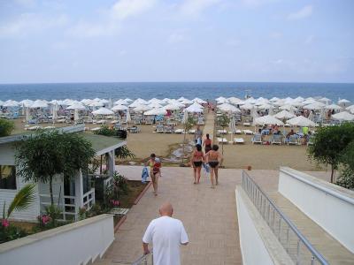 Hotel je nový, perfektní, pokoje a koupelna dostačující. Velký výběr jídla, ovoce, nápojů, nepřekonatelné medové dortíčky (nabrala jsem také 2,5 kg za 12 dní pobytu:-)) Pláž je příjemná, ale prudce se svažující, po 4 m hloubka. Okolí hotelu má prašné cesty, není dokončená infrastruktura, jen pár obchodů a jeden bankomat s lékárnou. Zajímavý je místní hřbitov, který je kousek od hotelu. V místě není veřejná doprava, jen hotelové taxi, které stojí 30 euro za 15 km do Side. Nevyhovující je výměna ručníků na pláž. Ručníky se vydávají v suterénu budovy hotelu u bazénu, musí se projít halou hotelu, po schodech dolů, pak s ručníky zase nahoru a zkratkou přes vnitřní bazén do zahrady. Ráno tam musíte s kartičkou pro ručníky, večer tam musíte znovu vrátit je mokré, pokud je nechcete sušit na balkoně. Lepší by bylo umístění stánku cestou k pláži, jako je to běžné v Egyptě. Celkový dojem z dovolené je však výborný, hotel určitě doporučuji.