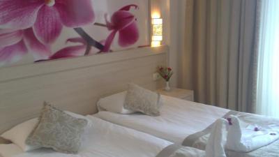 Hotel leží cca 300 m od písečné pláže s pozvolným vstupem do moře, do centra Side je to cca 4,5 km, lze využít místní minibusy