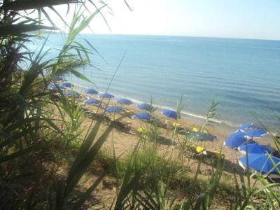 Pláž je trošku dál asi 8minut pěšky ale příjemná cesta. Lehátka na pláži s deštníkem po domluvě 2eu/den/osoba. Pláž čistá písečná, možnost všelijakých sportovních aktivit ať už jízda na banánu, parasailing, volejbal....Bary hned na pláži.