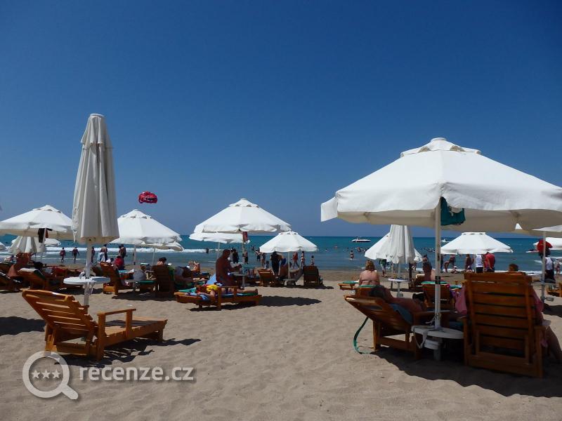 Pláž nádherná - nejvíce prostoru kolem slunečníků s lehátky ze všech pláží, které jsem zde viděla.