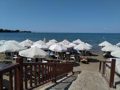 Pláž malá, ale místo se vždy našlo. Výhoda byla, že jsme jen přešly přes promenádu a už jsme byly na pláži.Moře bylo teplé a nebyly moc vlny, tak se dalo dobře plavat.