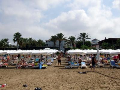 Celkově je hotel dobře situovaný u moře - opravdu pár metrů u moře, příjemný personál. Hotel je sestaven se šesti 5-patrových bloků s rychlovýtahem. Dostupnost internetu v lobby baru a u recepce, programy pro děti do 21:00 a pro dospělé méně hlučné do 23:00, dobře vybaven pro děti a seniory, přes den vás neobtěžuje hlasitá hudba, pouze při animačních programech, ale i ta je celkem slušně ztlumená. Hotel má hodně míst na lehátkách se slunečníky u moře i u bazénu, místo najdete i v poledne i po poledni. Vzdálenost do nákupního centra Side 3 m širokou promenádou kolem moře je asi 1800-2000 m, tj.25-30 min.chůze.Jinak hotel bych spíš hodnotil na 3 hvězdičky (***)