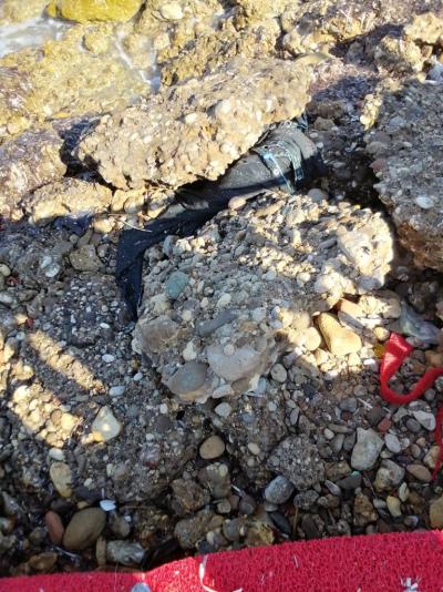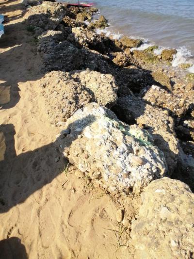 Pláž děs už zdálky, balvany, špína, hnus, moře krásné