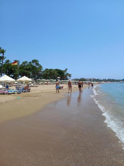 Pláž pěkná, dostatek lehátek i prostoru mezi nimi( ostatní hotely lehátka hlava na hlavě). Moře teplé čisté (ale azuro nehledejte- písek občas zvířený), pozvolný přístup. Sprchy na pláži jsou k dispozici.