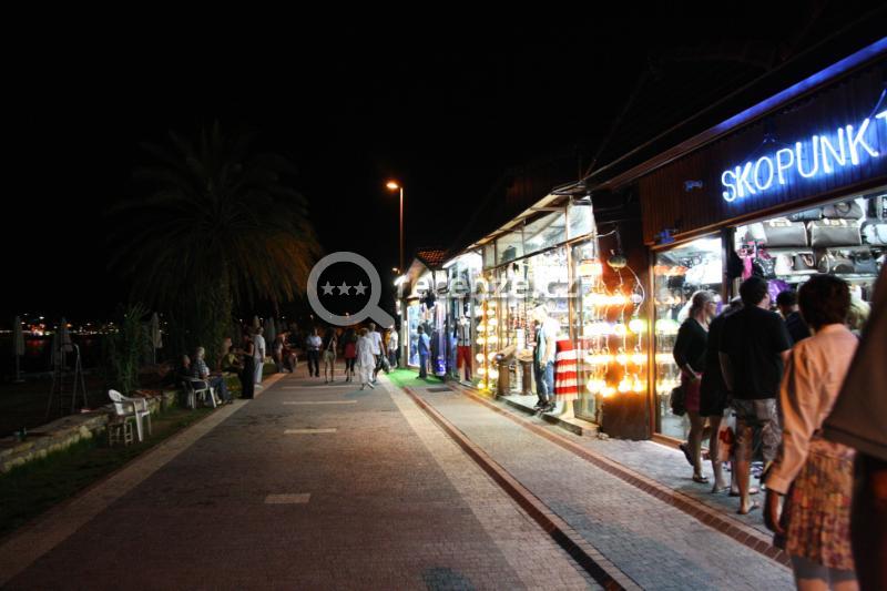 V okolí hotelu je promenáda s obchůdky, restauracemi, dá se po ní pohodlně dojít až do historického centra Side.