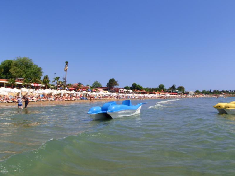 K moři je to cca 5 minut cesty, opravdu kousíček. Pláž písečná, společná s hotelem Sun Beach, lehátka a slunečníky jak u bazénu tak u moře zdarma. Možnost využívání služeb u hotelu san Beach. Pláž i moře krásné. Možnost vyzkoušení létání na padáku nad mořem - za poplatek.