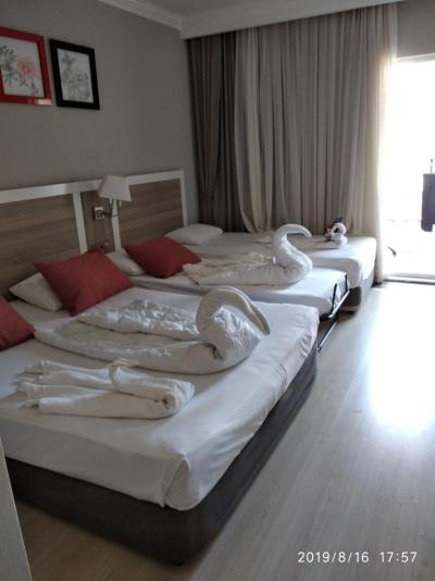 Čistota v celém hotelu , všude dostatek hygienických potřeb, které jsou doplňovány . Pozorný personál . Za malý bakšiš- což je v této zemi téměř svatou povinností , Vám např. z lůžkovin vyčarují labutě , motýly atd . ,Pokoje i koupelna prostorná , tv, wifi, výhled z balkonu jak na moře tak i na řeku. Prostorný vestibul s,panoramatickým výtahem :-) , bary , dosatek lehátek u bazénu i u moře .