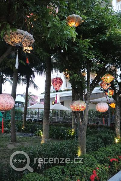 Hotel u pláže se nachází poblíž města Hoi An, kam si můžete zajet shuttle busem nebo taxi. Kolem budovy jsou stromy, na kterých visí spoustu lampiónů a v noci se rozsvítí do spousty barviček - je to úžasná podívaná. Pokoj jsme měli s výhledem do zahrady a na bazén, kde opět nemohly chybět desítky lampiónů. Člověk si pak jen sedne na balkón a čerpá tu energii, která je všude okolo něj. Pokoj byl vybaven velkou koupelnou se sprchovým koutem, vanou a fénem. K dispozici bylo Wi-Fi na pokoji zdarma a minibar s čajovým servisem.